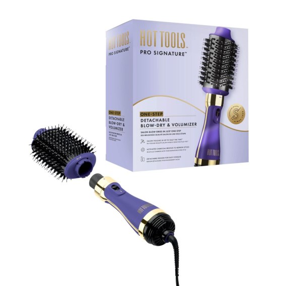 Pierwsza lokówko suszarka z odpinaną główką. Stylizuj i susz w jednym czasie. Najnowsza technologia i łatwiejsze przechowywanie. Idealnie wysuszone i wygładzone włosy także w podróży. Szczotko-suszarka 4w1 Hot Tools PRO SIGNATURE One Step Blow pomoże Ci w codziennej stylizacji. Z tym sprzętem układanie włosów będzie bajecznie proste i przyjemne. Szczotka do stylizacji włosów to połączenie 4 urządzeń - szczotki, suszarki, lokówki i prostownicy w jednym.