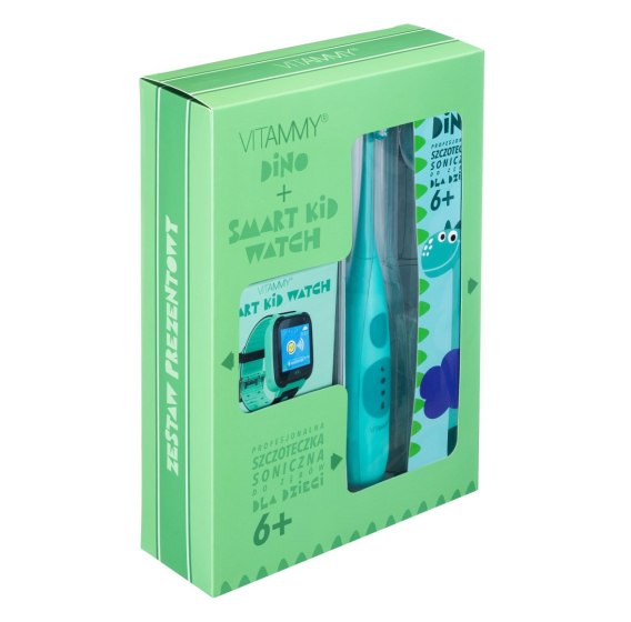 VITAMMY DINO ZIELONA Zestaw prezentowy, szczoteczka soniczna do zębów i zegarek GPS